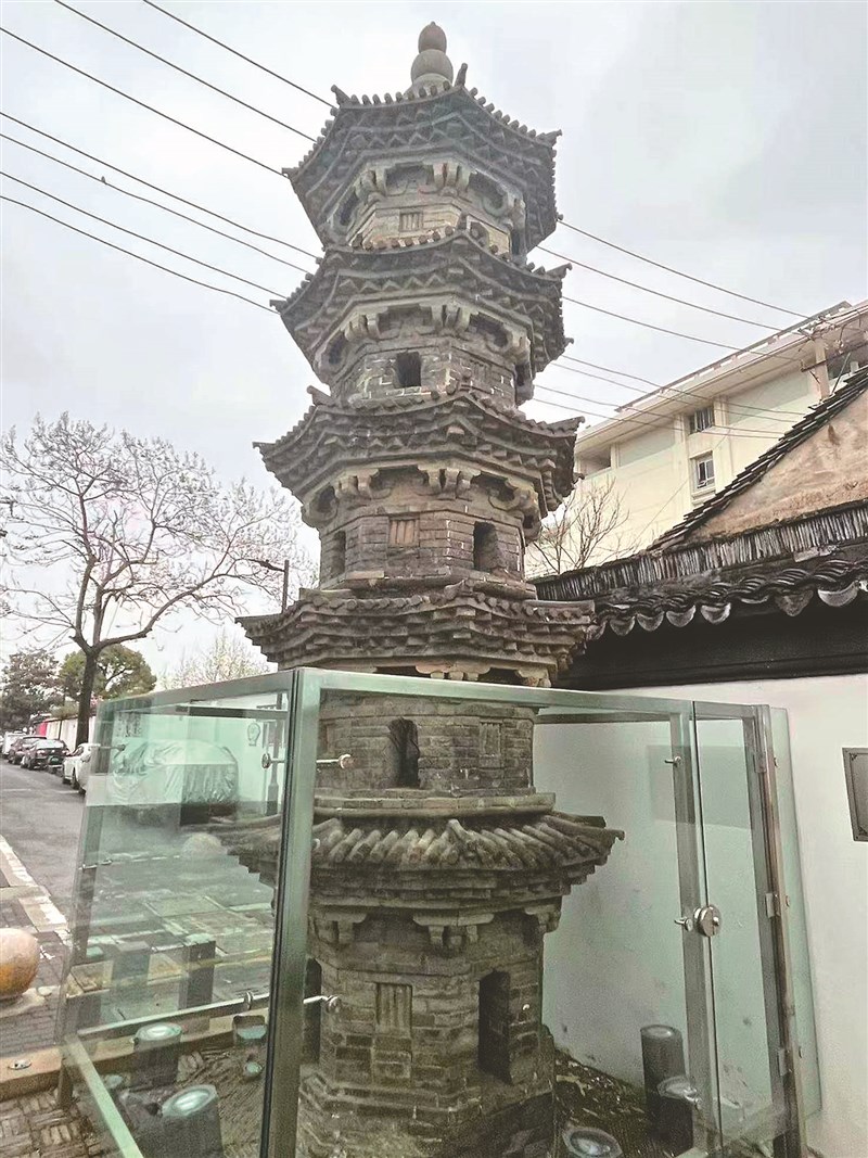 步出相門地鐵站一號出口,來到蘇大北門西側的甲辰巷與橋頭巷交匯處,就可以看見蘇州城僅存的甲辰巷磚塔。這座磚塔如今被玻璃罩保護著,看起來約有兩層樓的高度,隱藏在小巷弄的深處,一個不小心便可能錯過了。