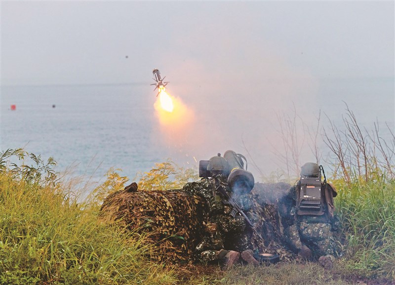 國防特別條例草案立法院朝野確定3月6日付委審查,國民黨主席鄭麗文昨預告國民黨版本已草擬完成,據了解,美方去年宣布111億美元8項對台軍售清單預算,已寫入黨版。圖為去年「漢光41號演習」國軍執行標槍飛彈實彈射擊。圖/資料照片