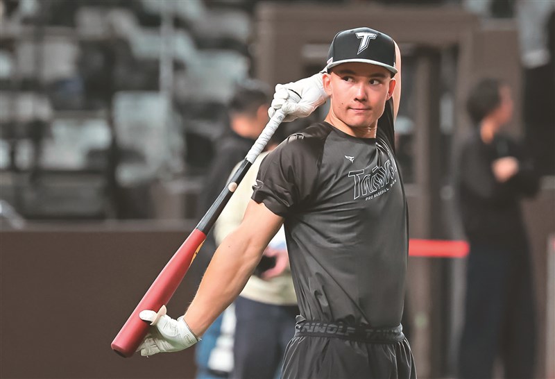 台美混血好手費爾柴德(Stuart Fairchild)加入中華隊,在台北大巨蛋內參與打擊練習。圖/余承翰