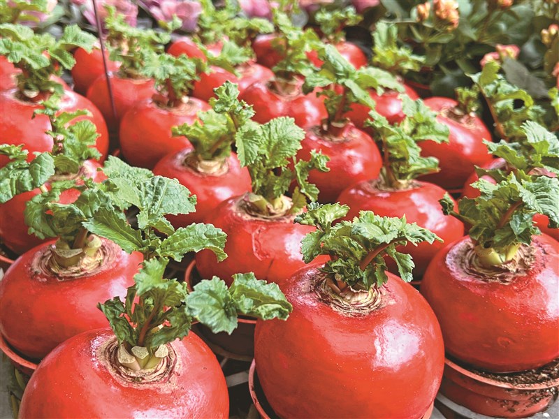 【花葉紀事】花團錦簇 喜洋洋 文/榮月 |2026.03.01 語音朗讀 71觀看次 字級 大 中 小 水仙是春節吉祥花卉。圖/榮月年花錦簇絢麗華美。圖/榮月櫻桃蘿蔔好彩頭。圖/榮月 文/榮月過年逢春,花開繁茂,年花錦簇絢麗華美,很適合擺放家裡添喜氣,贈人花禮祝福更具心意。一早,花市員工忙碌穿梭,將一盆盆花卉植栽上架,一個緊挨一個,個個展露燦爛花顏迎賓,紅的熱情、黃的耀眼、菊的暖心、紫的貴氣、粉的浪漫、綠的愉悅……五顏六色,生機盎然。年節花卉多以鮮艷色彩引人注目,搭配花語寓意吉祥迎新,讓每個日子都能過得如花盛開般美好。譬如鳳梨花和紅菜頭,祈願好運會旺旺來。象徵富貴的蘭花、牡丹和水仙,人人愛能招財的發財樹、金錢樹、銀柳和黃金萬兩(硃砂根)……年花不僅能為家裡妝點新氣象,也寓意能帶來好運勢,是最棒的新年賀禮。眾多花草中,讓我印象最深刻的是紅菜頭和長壽菊。以往比較常見的是,一顆潔白厚實的大白蘿蔔,上面綁著大紅緞帶,討個好彩頭。今年卻見識到無毒栽培的櫻桃蘿蔔,渾圓福泰紅彤討喜,不但名字雅致,還富含膳食纖維和維生素C,能生吃或做成沙拉料理,顏值和CP值都很高。另一植栽就是嬌小可愛、玲瓏出眾的長壽花,花色亮眼,葉片肥厚,是能觀花的多肉植物,光聽就很療癒,看了更是賞心悅目。長壽花很耐寒,生命力極強,葉插法繁殖也簡單,色彩繽紛,重瓣花美,在這除舊布新的日子裡能有此俏佳人相伴,必能健康延年福壽祥慶。說到吉祥喜慶氛圍,自然得有應景喜氣花藝,比如財神到、福氣到,爆竹紅火、馬到成功……各式盆栽祝福自己也祝福他人,新春吉利事事如意。 前一篇文章 【療癒綠洲】一筆一葉 看見世界 下一篇文章 熱門新聞 01【詩】啤酒與冰淇淋 2026.02.2702佛光山平安燈會 逾百萬人朝聖2026.02.2303【詩】紅豆控的紅龜粿2026.02.2304紐西蘭佛光山迎新春 總理盧克森同樂2026.02.2305溫哥華佛光山 歡樂年宵滿滿年味2026.02.2306星雲大師全集【經義】佛法滿人間—轉識成智2026.02.2307發現世界最早花椒?2026.02.2508台北道場行春 蔣萬安為市民祈福2026.02.2609【民俗資產】閩北建甌的太保信仰2026.02.2310【遇見荷】眠夢風吹雪2026.02.25 訂閱電子報 台北市 天氣預報 台灣一週天氣預報 相關報導 【療癒綠洲】一筆一葉 看見世界【草木堪為友】恆春厚殼樹 春芽引蛾吃光光【綠手指日記】圓滿球菊【視覺DJ 】燦爛華貴豔紫荊【藝象空間】丙午啟新 古器清供與花道賀歲【療癒綠洲】蝶戀花 作者其他文章【視覺DJ】驚艷百歲九重葛【花現好運】彩虹般的祝福 【食養日記】女兒的孝親菜單【純植生活】芋吃芋健康 營養一把罩【愛不釋手】 特別的紅包袋【新春祈願】最好的祝福