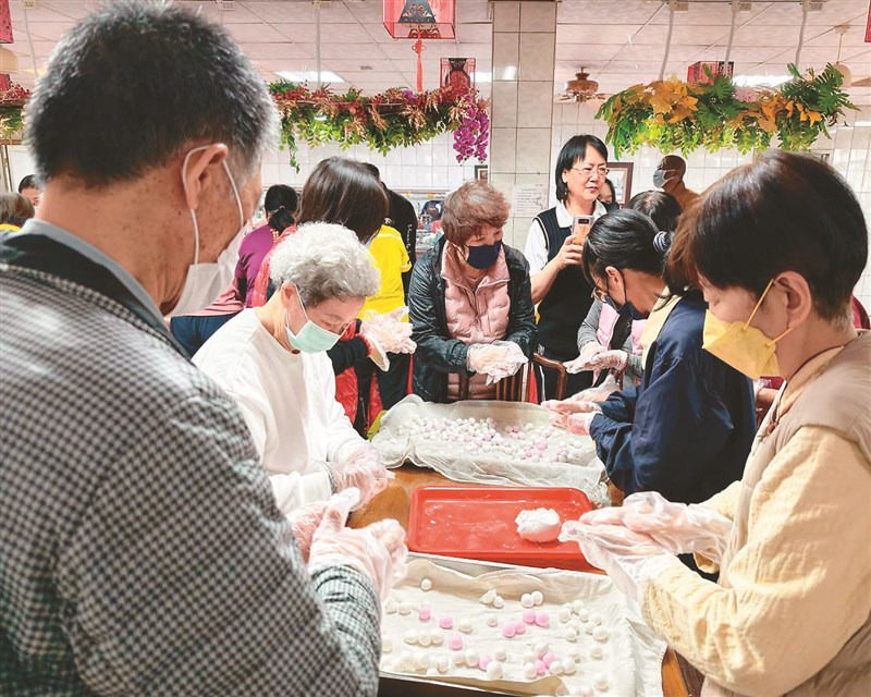 眾人一起搓湯圓,雙手翻滾著糯米團,象徵團圓與和合。