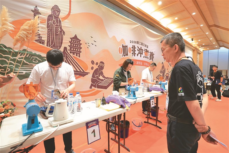 三好盃咖啡沖煮賽採三輪賽制,2月27日、28日在佛光山法寶堂登場,參賽選手神情專注,展現專業態度。