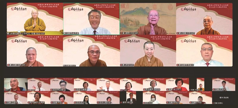 中華古今人文協會3月1日於線上召開第3屆第6次理監事會議,心保和尚(第1排左起)、劉宗澧、依空法師、依來法師等貴賓與會。