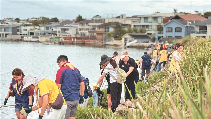 為響應「澳洲清潔日」並實踐佛光山開山祖師星雲大師「環保與心保」的理念,國際佛光會雪梨協會南一、光明、喜捨三個分會,聯同南雪梨佛光童軍團,3月1日於喬治河市的克萊登保護區舉行淨灘行動。活動有近70位佛光幹部、會員、童軍及家長熱烈響應,雪梨喬治河市長伊莉絲·博格(左5)亦親臨現場支持,眾人在短短3小時內清出近40袋垃圾,以實際行動守護社區的海岸生態。