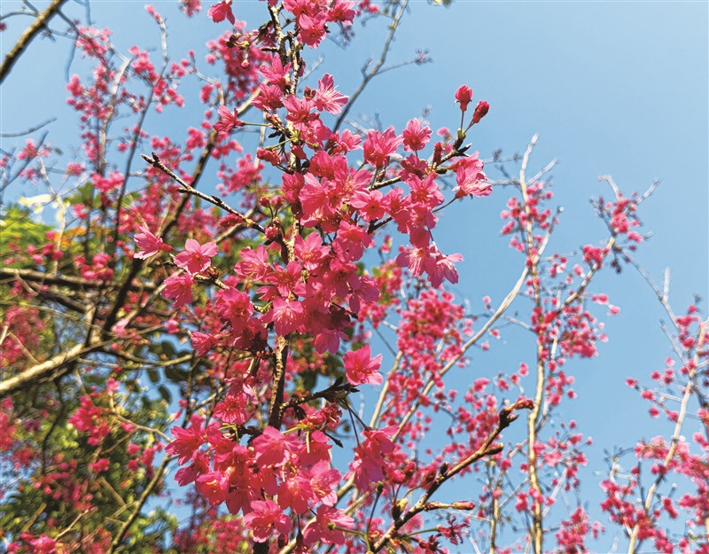 春有信,台灣山櫻花的「鈴聲」就是春訊,在山野、公園都搖響了輕快的曲子,引得白頭翁、綠繡眼穿梭起舞,向人間報喜。