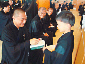 在座談會時間,來自桃園的謝志宏表示,感受到什麼是「信心和放下」,專心念佛可讓自我徹底放下,也體會出慈悲喜捨、感恩自在的法悅。另外,屏東金剛分會王仲秋,經過七天精進念佛,深感內心慚愧、感恩、知足的重要。很可喜的這次佛七有四位四至九歲小菩薩參與全程念佛,常住贈予每位小菩薩糖果及心培和尚新著作《歡喜抄經》一書。