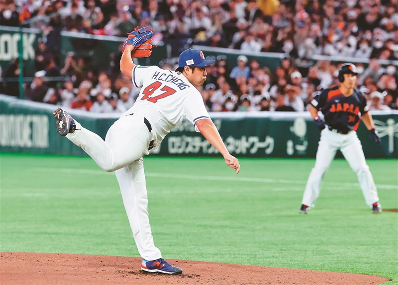 2026世界棒球經典賽昨晚舉行台日之戰,中華隊派出先發投手鄭浩均。圖/余承翰