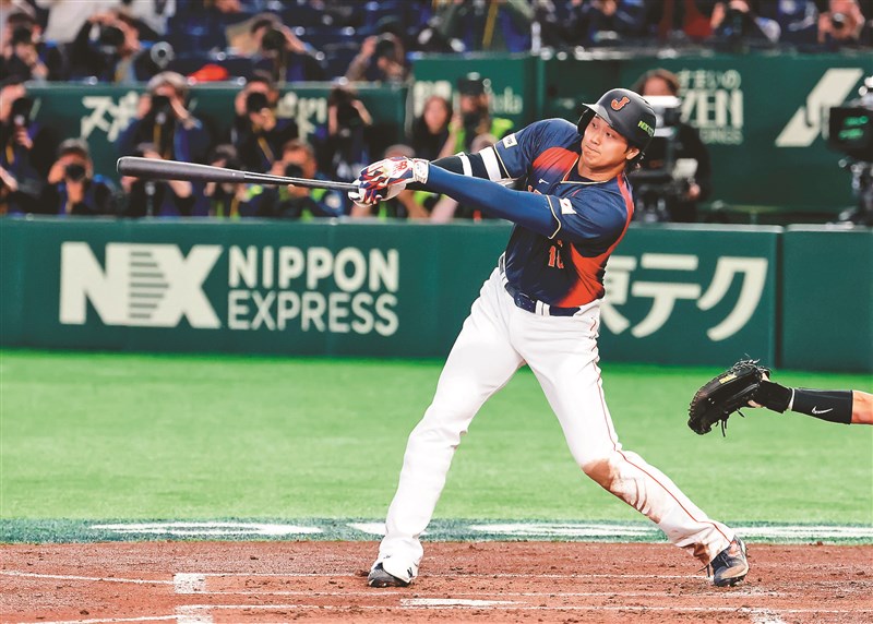 日本隊大谷翔平面對中華隊先發鄭浩均,拉出滿貫砲。圖/余承翰