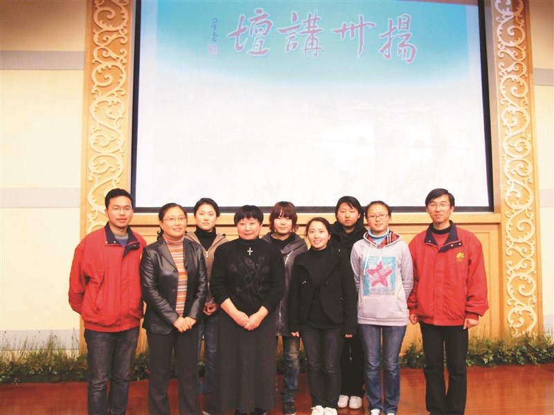 作者(前排左三)於2011年煙花三月,應邀至揚州鑒真圖書館「揚州講壇」登壇講演 ,後與書迷合影。圖/資料照片