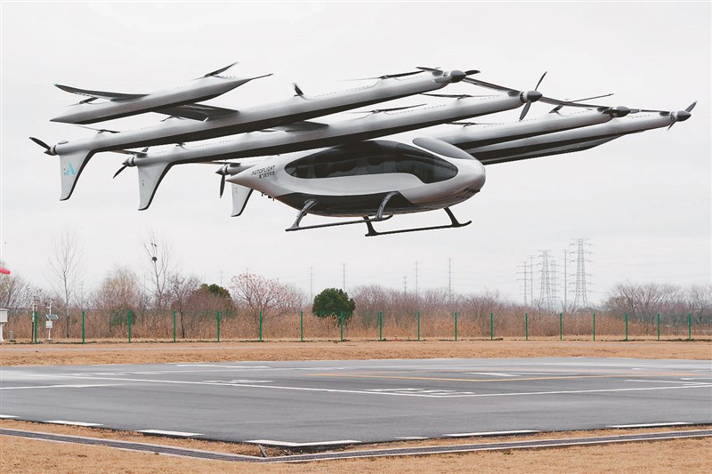 【本報綜合報導】在距離中國大陸上海港約60公里的江蘇省昆山市一座機棚內,一架外型宛如巨型無人機的飛行器,正進行展示飛行,這款名為「天際龍」(Matrix)電動垂直起降飛行器(eVTOL)重量達5公噸,為未來大型空中計程車的可能提供樣貌。