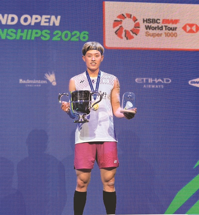 台灣「左手重砲」林俊易拿下全英羽球公開賽男單冠軍,接下來的目標,是力拚世界排名能穩居前3。圖/中央社