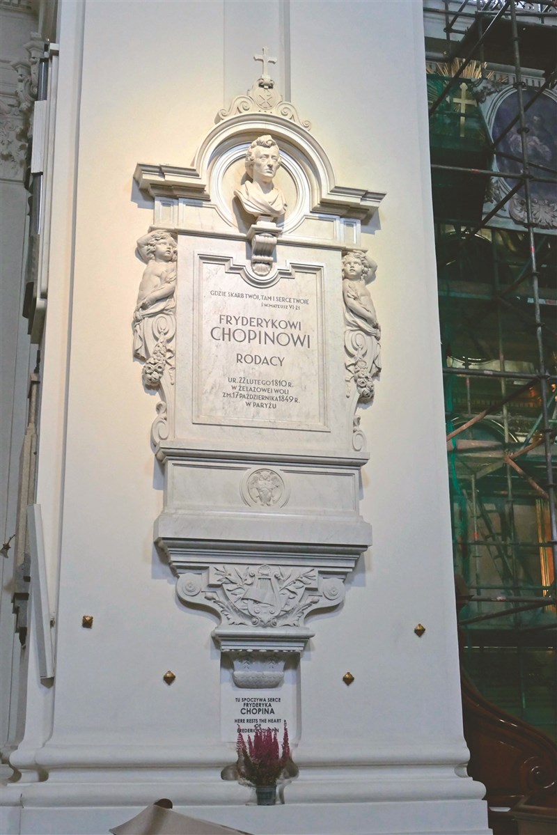 午後,我走進莊嚴肅穆的聖十字聖殿,坐在椅子上,默默凝視著眼前的蕭邦紀念碑。蕭邦的心臟就安放在裡面,去國十八年,「心」終於回到終日想望的故鄉。