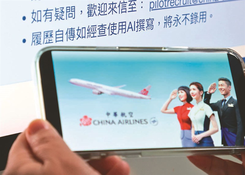 中華航空近日在徵才簡章中規定,若履歷自傳使用AI撰寫,將永不錄用。圖/林澔一
