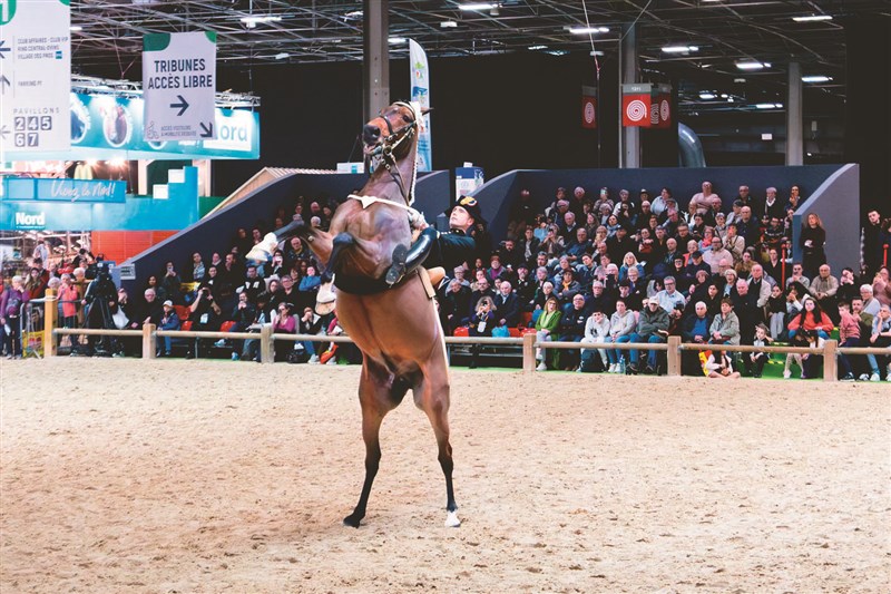 【本報綜合外電報導】第62屆巴黎國際農業大展日前舉行,吸引43萬訪客參觀。在本屆展出的3500隻動物中,沙木爾黑騎士馬術團(The Cadre noir of Saumur)帶領6匹馬首次於主會場展演馬術,格外引人注目。