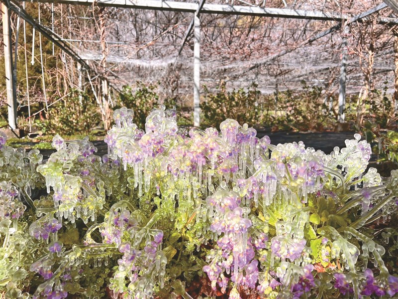 武陵農場藤花園 凍成水晶宮殿 圖/武陵農場提供 |2026.03.14 語音朗讀 26觀看次 字級 大 中 小 圖/武陵農場提供 武陵農場昨日凌晨,氣溫驟降至-0.6℃,農場為保護灌溉系統不被凍裂,而啟動灑水措施,意外將藤花園雕琢成一座晶瑩剔透的水晶宮殿,讓一早起床巡園的工作人員也忍不住直呼,「美到太不科學!」圖/武陵農場提供 前一篇文章 新聞千里眼 下一篇文章 跨世代照護 嘉義將設幼老共園 熱門新聞 01動物吃發酵花果 竟倒成一片2026.03.0802澳洲鸚鵡 吃芒果 成落果2026.03.0803伊朗稱絕不投降 允暫停攻擊鄰國2026.03.0804佛光山禪淨共修 小巨蛋獻燈祈和平2026.03.0805【藝象空間】易境花韻 卦象.花語.轉機2026.03.0806軌道經濟霸主 板橋車站超越北車2026.03.0907【花葉紀事】國色天香牡丹花2026.03.0808浩浩師恩:星雲大師的慈悲與願行 修行與解脫2026.03.0809星雲大師全集⑳【佛教管理學③】弘法系列人事篇-人事管理法⑩2026.03.0810台北杜鵑花季登場2026.03.08 訂閱電子報 台北市 天氣預報 台灣一週天氣預報 相關報導 古厝彩瓷 光彩奪目日月潭水位降那瑪夏螢火蟲生態之旅華航、長榮航空徵才 禁用AI寫履歷3郵輪同日靠港 基隆盛況重現多元計程車機場載客 高雄先試辦