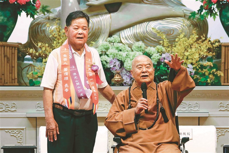 心保和尚也回顧蕭居士與佛光山的深厚因緣。早年開山時,星雲大師只需在地上畫幾筆,蕭居士便能心領神會,規畫建築。從佛光山本山到各地別分院,許多道場皆在他手下一磚一瓦興建而成。星雲大師生前也常提及他的付出,這分護持道場、成就眾生的功德,長久銘刻在佛光人心中。