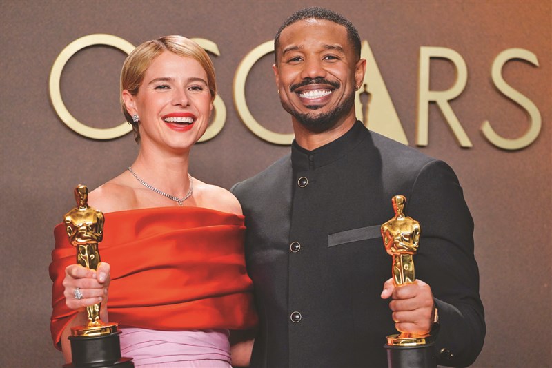 愛爾蘭女星潔西伯克利(左)勇奪奧斯卡最佳女主角獎,男星麥可B喬丹(右)則獲最佳男主角獎。圖/美聯社