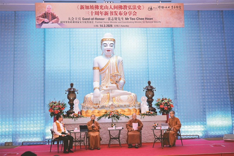 新加坡佛光山人間佛教弘法史 出版 人間社記者邱鴻凱新加坡報導 |2026.03.17 語音朗讀 68觀看次 字級 大 中 小 《新加坡佛光山人間佛教弘法史》出版,新書用兩年時間完成,記錄了道場在弘法、文化、教育與社會服務等方面的努力。圖/新加坡佛光山提供第一場新書發布分享會,由妙凡法師(右起)主持,邀請妙穆法師、滿可法師以及蘇政文主講。圖/新加坡佛光山提供新加坡佛光山3月14日在大雄寶殿舉行「傳燈六十 百年仰望──《新加坡佛光山人間佛教弘法史》三十周年新書發布分享會」,隨著兩場分享會圓滿,大眾歡喜舉起《新加坡佛光山人間佛教弘法史》合影。圖/新加坡佛光山提供 【人間社記者邱鴻凱新加坡報導】為慶祝佛光山弘法六十周年,並回顧人間佛教在新加坡深耕發展的歷程,新加坡佛光山於3月14日在大雄寶殿舉行兩場「傳燈六十 百年仰望─《新加坡佛光山人間佛教弘法史》三十周年新書發布分享會」。佛教界、學術界與信眾等550人出席,場面莊嚴隆重。新加坡前副總理兼資政張志賢、新報業媒體信託主席許文遠、澳紐總住持滿可法師、人間佛教研究院院長妙凡法師等貴賓與會。活動伊始,由多元文化樂團YIN Harmony融和不同民族樂器與音樂元素的表演,揭開序幕。新加坡佛光山住持妙穆法師致歡迎詞,《新加坡佛光山人間佛教弘法史》的出版,不僅是對過去30年弘法歷程的回顧,更為未來人間佛教的發展提供重要參考。30年對新加坡佛光山而言,是一段「從無到有、從荒蕪到繁茂」的弘法之路。本書記錄了道場在弘法、文化、教育與社會服務等方面的努力,展現佛光山開山祖師星雲大師人間佛教理念在新加坡的具體實踐。道場多年來透過兒童班、少年班與青年團培養青年人才,重視心靈教育與品格養成,期望播下善種,培育未來社會與佛教的棟梁。三好四給 建構和諧社會張志賢表示,新加坡是一個重視宗教和諧與文化多元的社會,各宗教團體在促進社會凝聚力方面扮演重要角色。他肯定佛光山長期在文化、教育與社會服務方面的貢獻,認為人間佛教所倡導的「三好四給」精神,以及慈悲、包容與智慧的價值,對於建構和諧社會具有重要意義。滿可法師特地從澳洲前來出席,他分享新加坡佛光山初創時期,星雲大師曾形容新加坡如同一顆紅寶石,僧信二眾秉持大師慈心悲願與四大宗旨,在此扎根人間佛教,為社會帶來更多愛心與關懷。國際佛光會新加坡協會長蘇政文致詞表示,人間佛教已弘傳至世界五大洲,但各地弘法環境與挑戰各有不同。蘇政文舉例,新加坡佛光山長年舉辦「敦親睦鄰獎學金」,讓不同族群與宗教背景的學生走入佛堂,促進宗教理解與社會和諧。他期許佛光人持續實踐「三好、四給」,讓佛光成為照亮榜鵝乃至新加坡的一道光。薪火相傳 僧信集體創作 妙凡法師分享新書出版緣起,兩年前應妙穆法師之邀,為記錄新加坡佛光山僧信二眾推動人間佛教的歷程而策畫此書,邀請香港中文大學人間佛教研究中心主任陳劍鍠教授擔任主筆,帶領副研究員陳肯以及高雄大學通識教育中心兼任助理教授蕭愛蓉,共同撰寫完成。妙凡法師指出,此書是人間佛教研究院規畫的《佛光山人間佛教全球弘法史》系列中,全球道場第一本出版的作品。妙凡法師表示,本書具有三個重要意義,第一,見證新加坡社會的開放與包容,使人間佛教得以在此落地生根,並促進社會和諧;第二,展現僧信二眾「集體創作」的力量,從星雲大師早年弘法到歷任法師接續努力,讓佛教智慧在現代社會展現新的生命;第三,呈現人間佛教的發展與影響,使佛法從寺院走入家庭與社會。隨後,大會舉行新書發布儀式並播放三十周年回顧短片,透過影像回顧新加坡佛光山從創建到發展的歷程,象徵人間佛教弘法歷史薪火相傳。 前一篇文章 環保教育 南非學童繪畫護地球 下一篇文章 三好教育進校園 扎根成為校園文化 熱門新聞 01多元計程車機場載客 高雄先試辦2026.03.1102台灣燈會 法國「飛天白馬秀」演到14日2026.03.1103【分享時刻】梨木小提燈2026.03.1304法寶贈南天大學 學術信仰新對話2026.03.1305佛光山蓮華寺新春慶典 獲美國會頒獎2026.03.1306南投三好校園 交流深化品格教育成果2026.03.1107開齋節 印尼佛光人送物資2026.03.1108佛教友誼獎學金研習 青年涵養正知正見2026.03.1309紐約「星光在人間」音樂會 憶星雲大師2026.03.1110【院線片】《陽光女子合唱團》淚水與歌聲創造票房紀錄2026.03.14 訂閱電子報 台北市 天氣預報 台灣一週天氣預報 相關報導 馬尼拉跨宗教婦女論壇 佛光山與會三好教育進校園 扎根成為校園文化佛光社輔佈教師 法務部矯正署表揚種樹吃素護地球 佛光大學推動永續獻策聯合國 南天大學提出《佛教數據原則》聯合國CSW70 佛光會分享女力救災 作者其他文章新加坡三好樓安基 佛光普照獅城