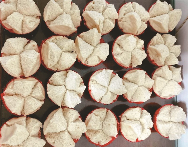 今年的發糕,成功開花,讓我鬆了一口氣。圖/劉芳