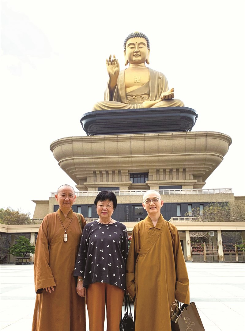 二○二○年二月,作者( 中 )受邀參觀佛陀紀念館展覽,由文化院永餘法師( 左 )及滿觀法師( 右 )陪同。圖/鍾玲 ( 作家、教授 )