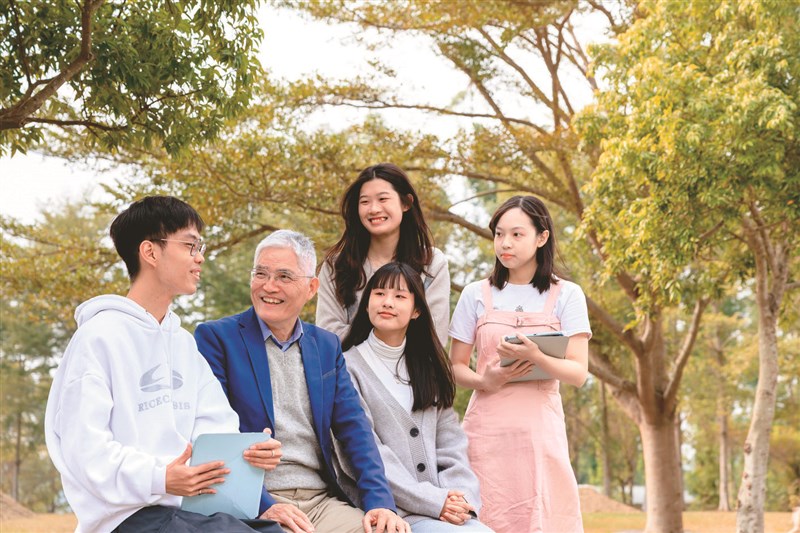 南華大學繁星推薦,今年首度招生的半導體應用學士學位學程,錄取到1名校排10%學生。圖為校長高俊雄(左2)與學生合照。圖/南華大學提供