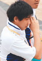 由郭振維、陳詩園和王正邦所組的男子團體賽,早上出戰美國時表現優異,先過頭關,但沒想到隔一小時後出賽卻戰敗。教練林政賢無奈:「我真的沒想到這結果,非常意外!」烏克蘭維持水準拿下勝利,也逼出王正邦的眼淚。一走下射箭場後,王正邦顧不得媒體和人群在旁,情緒顯得低落。畢竟對戰烏克蘭時,他的表現真的不到平常水準,只有頭一支箭奪得滿分。(侯永全攝)