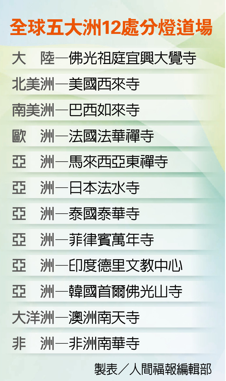 全球五大洲12處分燈道場