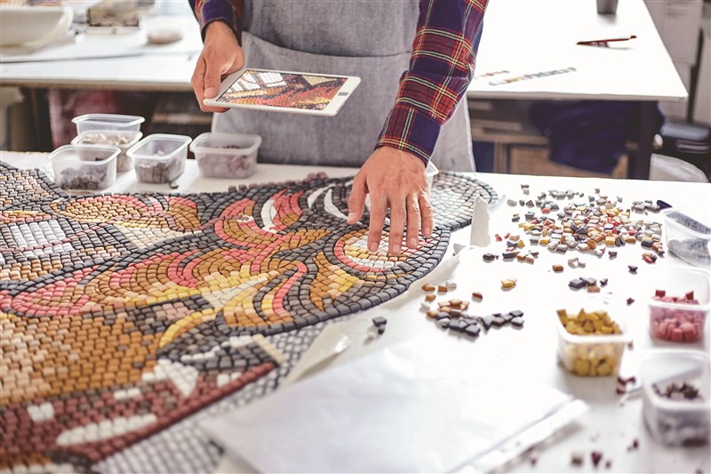 現今馬賽克泛指用石頭、陶瓷嵌塊、琺瑯與彩色玻璃或其他材料組成的圖案,形成斑斕的視覺藝術效果。