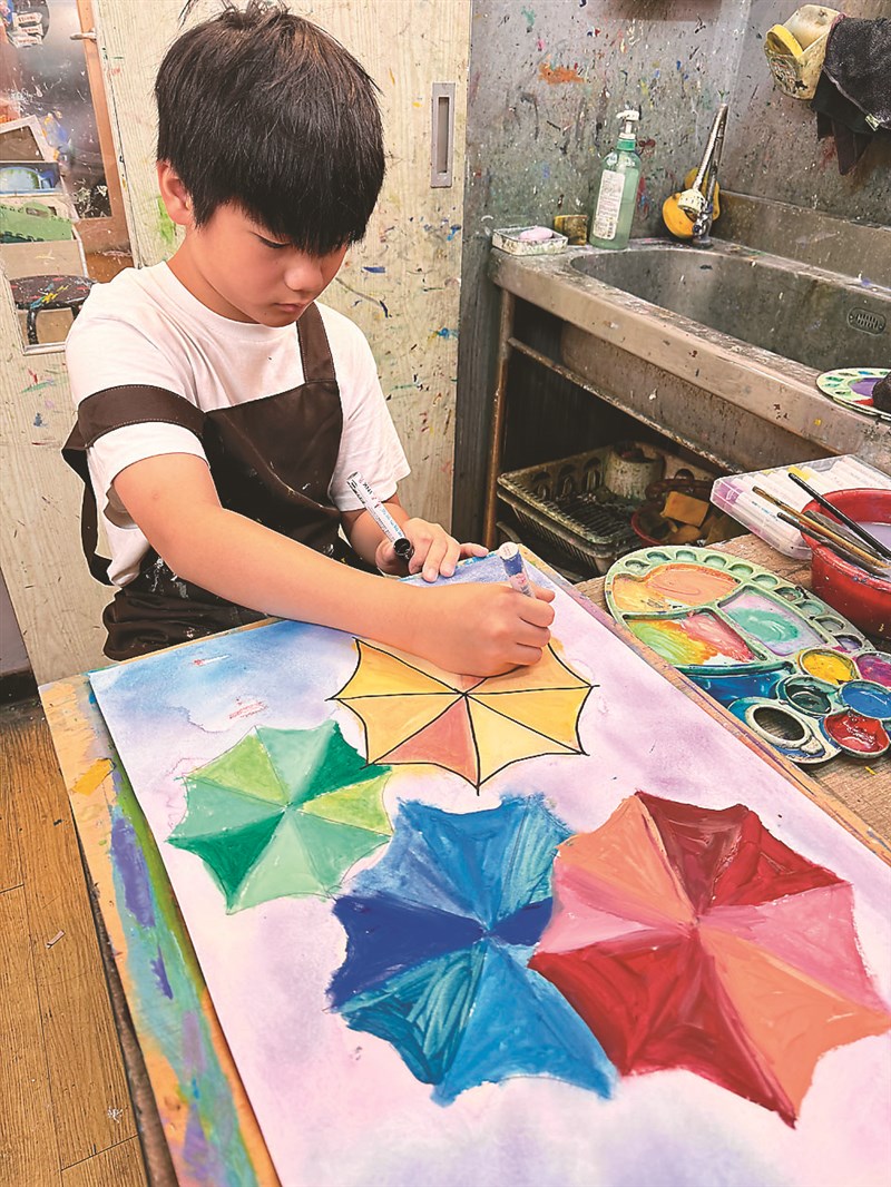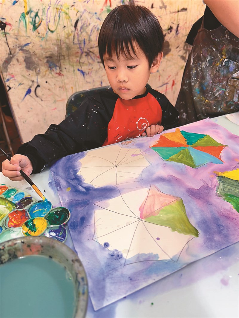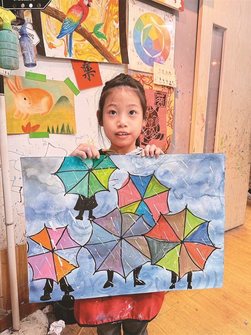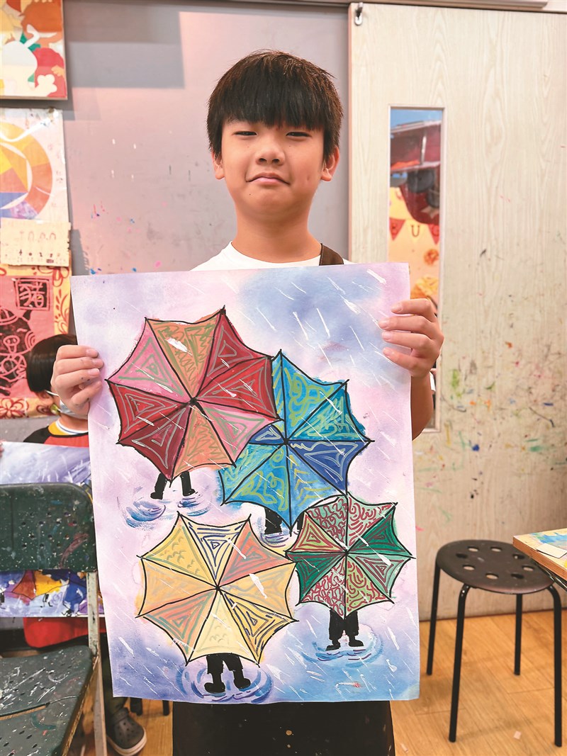 【童畫天地】雨傘水彩渲染法 文/李夏綺 |2026.03.23 語音朗讀 17觀看次 字級 大 中 小 1 使用尺將圓形平均分割,畫出傘面的放射狀結構。圖/布穀鳥兒童美術 2 背景使用溼畫法,用藍紫色系營造出煙雨的漸層感。 圖/布穀鳥兒童美術3 等背景半乾時,乾溼並用為傘面上色。相較於背景的自由擴散,傘面需要明確邊界,使主體更加鮮明立體。圖/布穀鳥兒童美術4 在半乾的畫面上疊加色彩,強調傘骨線條與明暗,並加入雨絲與水花。 圖/布穀鳥兒童美術林欣彤/新北市昌平國小三年十一班 圖/布穀鳥兒童美術張雪/新北市中港國小一年六班 圖/布穀鳥兒童美術林宥樺/新北市榮富國小四年二班 圖/布穀鳥兒童美術 文/李夏綺說到水彩畫最迷人之處,莫過於「水」與「色」之間那種不可預期卻充滿驚喜的流動。今天,夏綺老師要教大家透過水彩渲染技法,感受溼度、時間與色彩的微妙關係。一開始,我們以清水均勻鋪滿畫面,運用「溼畫法」讓顏料自然暈開。當色彩滴落在溼潤的紙面上時,顏料會隨著水分擴散、融合,形成柔和且層次豐富的天空。這不僅訓練大家對溼度的敏銳度,更讓我們可以觀察顏色如何在水中邂逅、交融,誕生出全新的視覺體驗。下雨天是什麼顏色呢?今天我們要以「雨天撐傘」為主題,深入練習色彩搭配。從三原色的認識出發,透過不同比例的混色,親手調配出明亮、柔和或深沉的色彩。大家可以在嘗試中驚喜地發現,只要顏色比例微調,畫面意境便截然不同。在創作中,我們將雨傘分割成幾何區塊,運用點線面進行裝飾,讓色彩間既有對比也能彼此協調。背景以藍紫色系層層堆疊,表現出雨水流動的動態感。作品展現了對調色技巧的掌握,還能訓練大家在嘗試與修正過程中的耐心與想像力,也讓畫面充滿生命力。使用媒材與工具:水彩紙、水彩顏料、水彩筆、尺、吹風機、彩色筆。 前一篇文章 【徵文啟事】 下一篇文章 【創作花園】熱血的大隊接力練習 熱門新聞 01水晶物理性 與化學性質2026.03.1702北美最乾燥加州死谷 罕見繁花錦簇2026.03.1803大馬急轉彎 撤回美對等貿易協議無效說 2026.03.1804店貓上班摸魚睡翻 萌樣逗樂網友2026.03.1805【歷史點滴】走過百年 高雄橋頭糖廠2026.03.1806美海軍引進機器人 爬牆維修艦艇2026.03.1907【大江南北】哈爾濱呼蘭天主教堂2026.03.1808【分享時刻】某些愛2026.03.1809澎湖食農教育 向下扎根2026.03.1910草間彌生作品 德國展出2026.03.18 訂閱電子報 台北市 天氣預報 台灣一週天氣預報 相關報導 【快樂塗鴉簿】好吃的水果【快樂塗鴉簿】冠軍之路【薇樂日記】搬家機器【快樂塗鴉簿】青花瓷展【原民說故事】渡海而來的海祖(下)【快樂塗鴉簿】桌上的靜物 作者其他文章馬躍好運到 手作報喜來【童畫天地】貓頭鷹剪貼技法