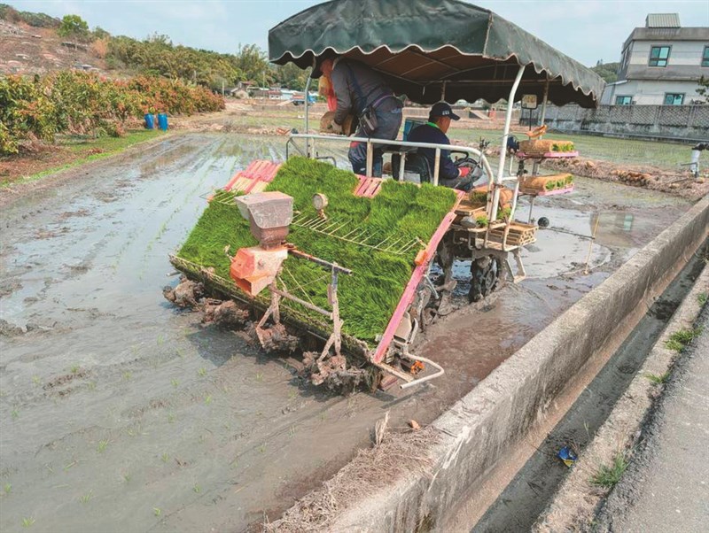 全台水情吃緊,但也有農友堅持耕作一期稻,這兩天才開始抽水淹田插秧。圖/吳傑沐