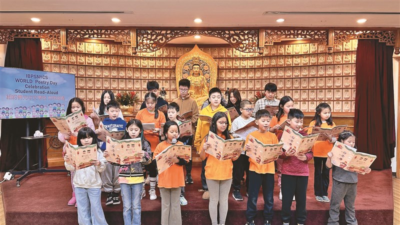 【人間社記者胡如靜紐約報導】為響應3月21日世界詩歌日,紐約佛光中文學校舉辦詩歌朗誦活動,150餘位學童依班級輪流登台,純真童聲以雙語的方式,誦讀佛光山開山祖師星雲大師詩詞與名人詩作,現場氣氛溫馨寧靜。