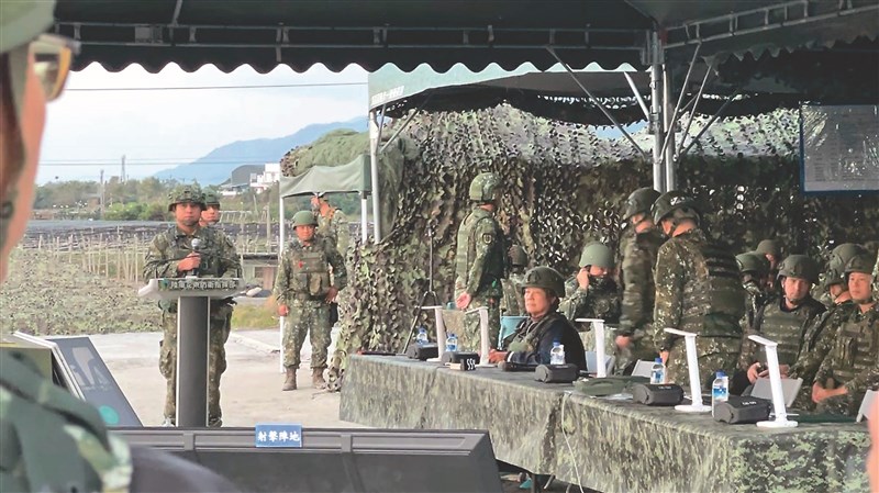 陸軍花東防衛司令部第二作戰區,昨清晨在台東太麻里溪出海口實施「正義操演」火砲實彈射擊,M60A3戰車砲、155公厘榴彈砲,以及120、81迫擊砲接連開火,火光與砲煙交織,場面震撼。操演全程可見美方技術協作人員(見圖,中央社)在場觀看,提供意見。