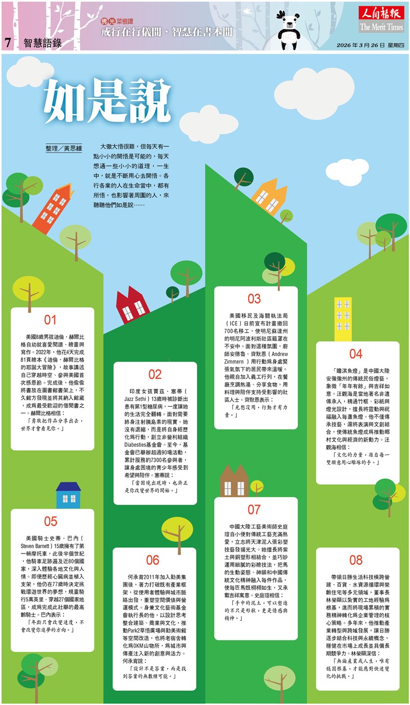 印度女孩賈茲.塞蒂(Jazz Sethi)13歲時被診斷出患有第1型糖尿病,一度讓她的生活完全翻轉。面對需要終身注射胰島素的現實,她沒有退縮,而是將自身經歷化為行動,創立非營利組織Diabesties基金會。至今,基金會已舉辦超過90場活動,累計服務約7300名參與者,讓身處困境的青少年感受到希望與陪伴。塞蒂說: