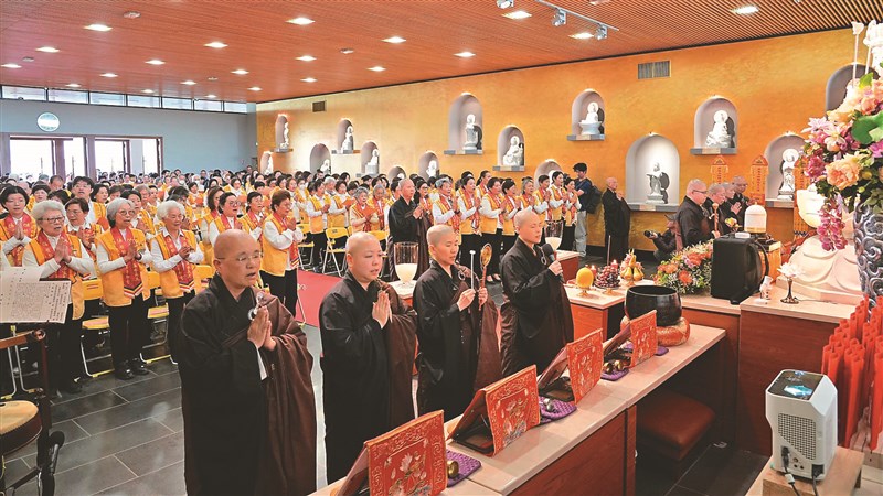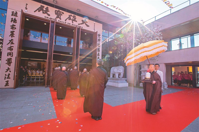 3月21日,星雲大師靈骨暫奉法華禪寺觀音殿,來自歐洲各地逾350位信眾齊聚恭迎,儀式莊嚴肅穆。圖/人間社記者胡鵬