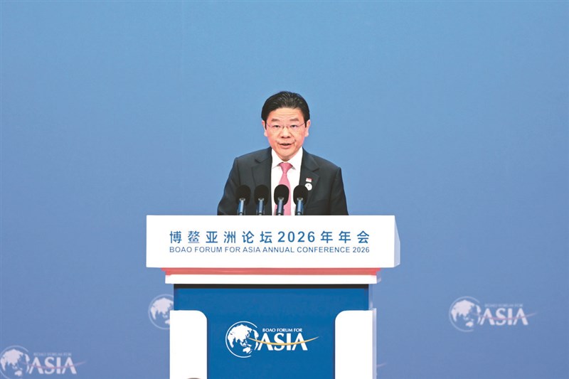 博鰲亞洲論壇2026年年會全體大會,26日在中國大陸海南省博鰲舉行。圖為新加坡總理黃循財在會上致辭。圖/中新社