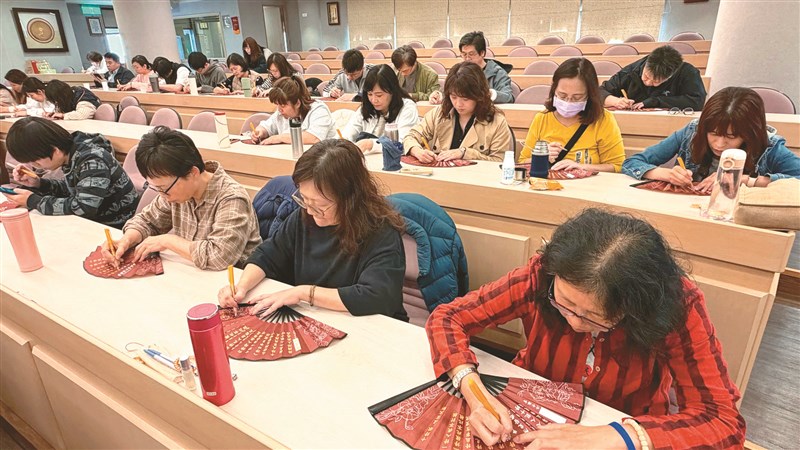 新北市政府社會局24日在往金光明寺舉辦「新北市社會局主管共識營」。圖為大家專注抄寫星雲大師「十修歌」法語。圖/人間社記者趙裕隆