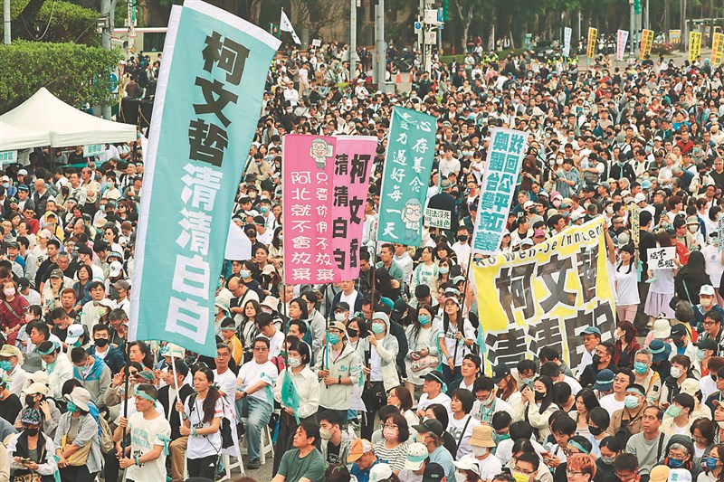 民眾黨昨在凱達格蘭大道舉辦「戰!329上凱道討公道」集會活動聲援,主持人許甫在活動尾聲宣布現場超過8萬人,線上直播觀看人數更一度突破10萬人。
