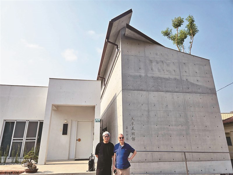 遠流董事長王榮文(圖右)是嘉義縣義竹人,他邀來知名清水模建築師毛森江(圖左),將他位於義竹的老宅祖厝,改造成台灣首間農夫美術館「天來美術館」。圖/陳宛茜