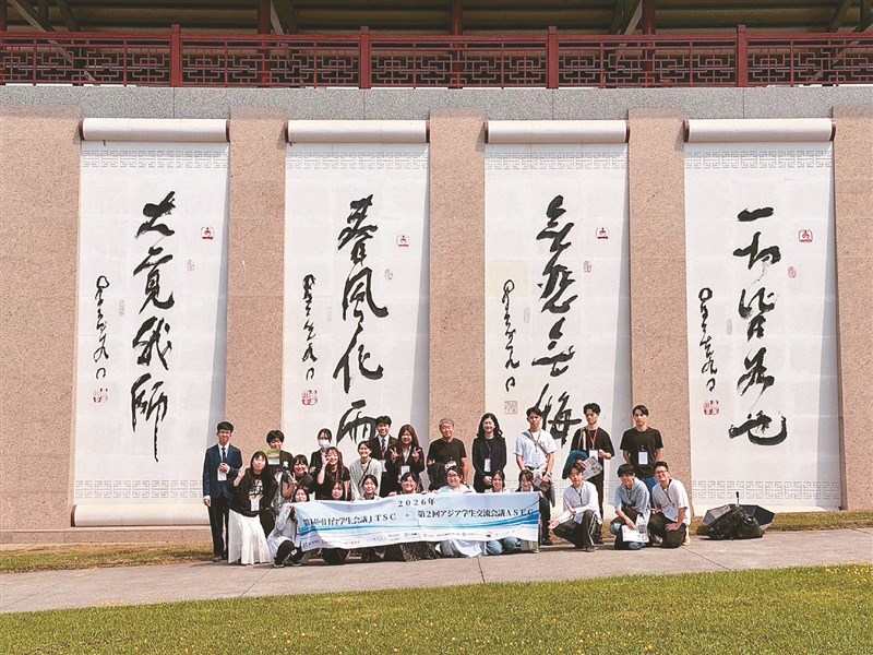 南華大學舉辦亞洲學生交流會議,日本學生於南華大學中道樓合影留念。圖/南華大學提供