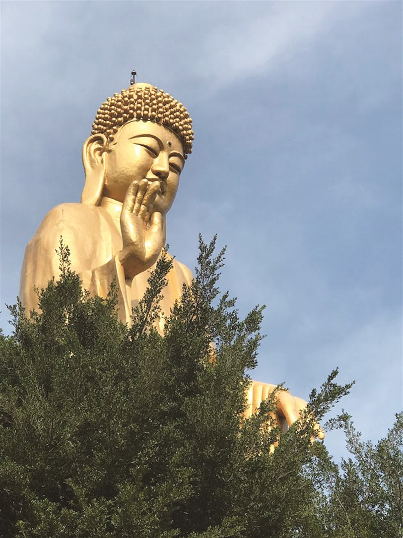 佛光山「大佛城」上莊嚴宏大的接引大佛。圖/石德華(教師、作家)