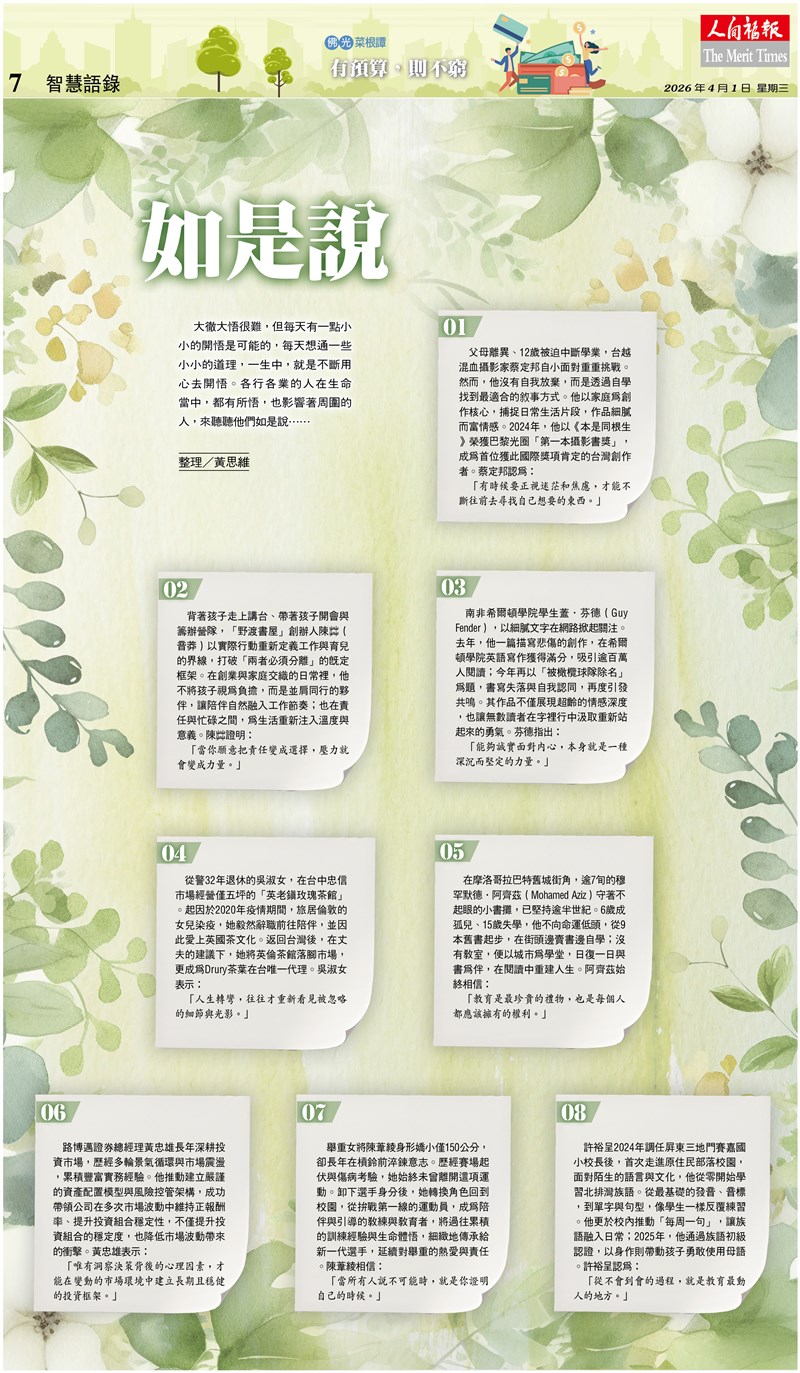 背著孩子走上講台、帶著孩子開會與籌辦營隊,「野渡書屋」創辦人陳茻(音莽)以實際行動重新定義工作與育兒的界線,打破「兩者必須分離」的既定框架。在創業與家庭交織的日常裡,他不將孩子視為負擔,而是並肩同行的夥伴,讓陪伴自然融入工作節奏;也在責任與忙碌之間,為生活重新注入溫度與意義。陳茻證明:
