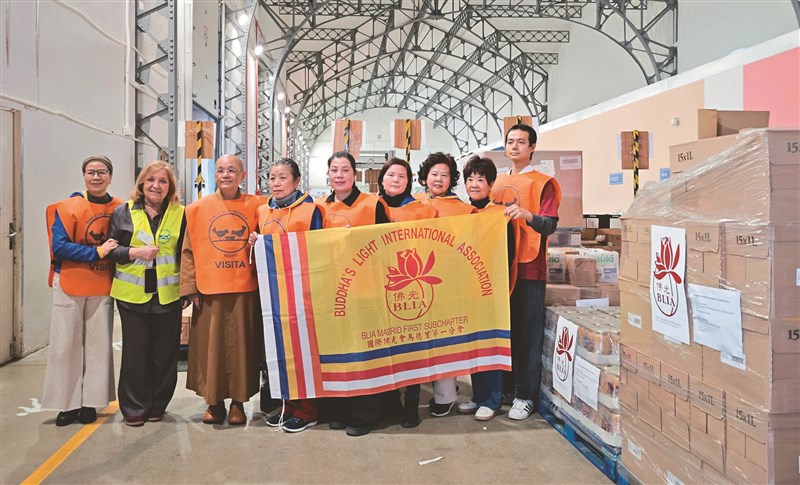 除物資捐贈外,馬德里佛光協會第一分會義工參與現場分揀與整理工作。由分會長李春燕與督導蘇建華帶領,義工們細心分類、妥善入庫,展現佛光人服務社會的行動力。