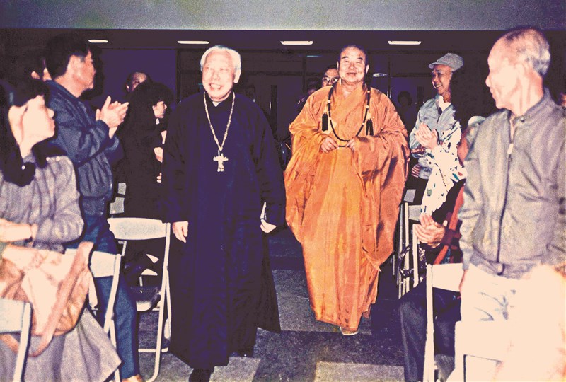 星雲大師向來贊成宗教之間要和諧、尊重,彼此要包容、交流。圖為大師(右)與羅光總主教(左)。圖/資料照片
