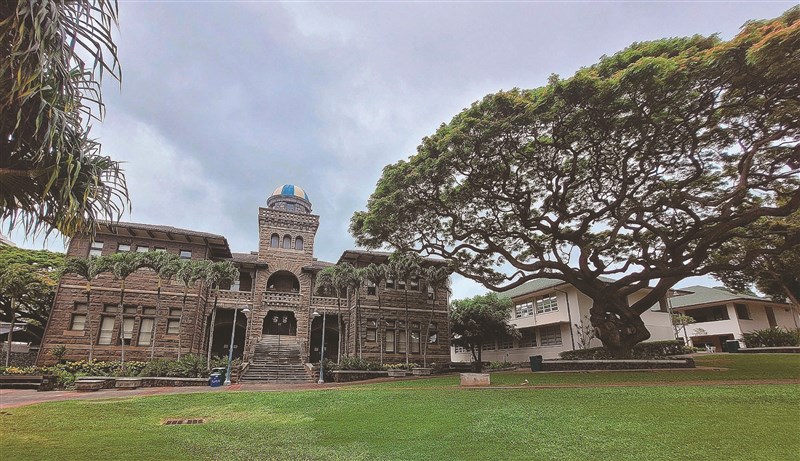 檀香山普納荷學校,右為酸豆樹。圖/孫博