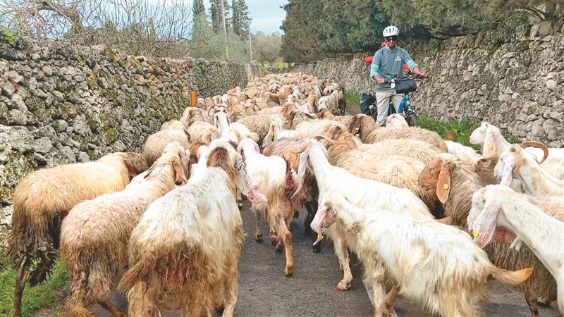 騎士在單車道可享受鄉村風光,偶爾還會遇到羊群散步。圖/中央社