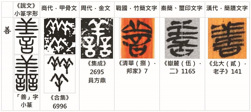 上善落水 星雲大師一筆字書法字源 文/王瑜楨(佛光大學語文學系助理教授) |2026.04.05 語音朗讀 81觀看次 字級 大 中 小 古人為紀錄日夜變化以日晷紀錄太陽運行規律,有時受限,便發明漏刻,以水流、沙流等為參考依據。圖/取自中國國家博物館網站若 圖/王瑜楨提供保持善心,心如明鏡,貢獻自己的力量,「有容乃大」才是最接近自然之道。 圖/珣沂圖/佛光山法堂書記室提供水 圖/王瑜楨提供上 圖/王瑜楨提供善 圖/王瑜楨提供老子以水性比喻上善者,善心要像水、像海一樣納百川,至剛、至柔,無私地滋養萬物。圖/珣沂 文/王瑜楨(佛光大學語文學系助理教授)你有心存善良嗎?你的付出會求取回報嗎?你常與人爭高下嗎?水,不與人爭、處眾人之惡、不堅持形象,滋潤萬物,遵循自然無私的善行,無處不在!一、「上善若水」字形發展脈絡關於「上」、「善」、「若」、「水」四字字形源流本形、本音、本義三方面發展,可以從字形發展演變表(以下簡稱「《字形表》」)說起。【字形表說明】先列許慎《說文解字》(簡稱「《說文》」)小篆,而後由時代早至晚排列,從商代最早甲骨文字形、周代金文字形、戰國竹簡字形、秦簡璽印文字到漢代簡牘字形。第一,上、善、若、水字本音。「上」字,國語注音讀作ㄕㄤˋ,漢語拼音讀作shàng。「善」字,國語注音讀作ㄕㄢˋ,漢語拼音讀作shàn。「若」字,國語注音讀作ㄖㄨㄛˋ,漢語拼音讀作ruò。 佛語譯讀為ㄖㄜˇ(rě),作「般若」、「蘭若」。「水」字,國語注音讀作ㄕㄨㄟˇ,漢語拼音讀作shuǐ。第二,上、善、若、水字本形本義。字形表中,「上」字本形,甲骨文、金文字形以下部長橫畫為基準,在上加短橫畫表示上面之抽象義;戰國字形為了與「二」字表示區別,加上豎筆;秦系文字的「上」形起筆加彎鉤,《說文》小篆寫法承襲。「上」字本義是指上面、上方,《說文.卷一.丄部》曰:「上,高也。此古文上,指事也。」表示高於相對事物的意思。字形表中,「善」字甲骨文字形寫从三羊、金文以後字形寫从一羊、下从誩,「誩」,表示兩頭雄性羊以羊角相競爭之形。古人將羊作為祭祀典禮活動中重要的犧牲祭品,象徵吉祥、純潔、正義,商周時期青銅器多見以羊為形象的禮器,可見羊的形象在早期人類社會活動中,具有重要的文化意涵。「善」字最早源形,《說文解字》收於「譱」字,《說文‧卷三.誩部》:「譱,吉也。从誩、从羊。此與義美同意。」《正字通.言部》:「譱,善本字。」《漢書.禮樂志》:「故孔子曰:『安上治民,莫譱於禮;移風易俗,莫譱於樂。』」清代段玉裁《注》:「美與善同意。按羊,祥也。故此三字从羊。」字形表中,「若」字本形,甲骨文、金文字形象人跪跽,雙手往上整理披散頭髮,使其柔順。戰國文字下部跪跽形寫作「卩形」,上部雙手與頭髮相連。《說文‧卷一.艸部》:「若,擇菜也。从艸、右。右,手也。一曰杜若,香艸。」《說文》收錄二義:一是「擇菜」,即採摘野菜;二是「杜若」,香草名,屈原《楚辭.九歌》、《九章》多次引用,借代表示「香草美人」,比喻君子、君主、賢臣、美人品德美好意象。字形表中,「水」字,自甲骨文、金文以來,字形演變規律,均以中間一豎筆表示主要水道,左右兩邊加小點表示支流。古代測量、計時工具沒有現在高科技數位精密測量儀器進步。當時人們記錄天氣、日夜變化以日晷紀錄太陽運行規律,有時受限,便發明漏刻(水鐘),以水流、沙流或川道滴流為參考依據。因此《說文‧卷十一‧水部》曰:「水,準也。北方之行。象眾水並流,中有微陽之气也。」本義是指以水道當作準則、標準。如漢代盛行因陽學說的北方玄水。象眾水會流之處,中畫隱含陽氣產生。二、文獻典故「上善若水」,出自《老子‧道德經》第八章:「上善若水。水善利萬物而不爭,處眾人之所惡,故幾於道。……夫唯不爭,故無尤。」所謂「人往高處走,水往低處流」,我們總覺得人生要不枉此行,給自己訂定一個高目標、大願景,例如學業要考最高分、職位要往高處爬、公司要每年衝上多少營業額、達到多少門檻等等,《老子》卻認為這樣不好。《道德經》第八章中,老子以水性比喻上善者、上德者、聖人,欲達到無為而治的善心,要像水、像海一樣「納百川」,至剛、至柔,無私地滋養萬物,卻不與萬物爭,它處在最低下之處,流向低劣、厭惡、討厭、汙穢之處,卻能洗滌人心。人們不願意做的事情,它願意做,即使身處混雜地方,仍然保持善心,心如明鏡,貢獻自己的力量,「有容乃大」,才是最接近自然之道。因為不執著、不爭奪、不拘泥、不計較,順應自然不離道;沒有責怪、沒有怨念,則無過患憂慮,安然自處。 前一篇文章 【普覆慈航】生死華蓋 輪迴娑婆 下一篇文章 熱門新聞 01苗栗漁港冒藍眼淚 縣府將檢測水質2026.03.3102祖厝大變身 王榮文打造農夫美術館2026.03.3103明德水庫蓄水量僅27% 今起供4停42026.04.0104星雲大師靈骨分燈日本 法燈長明2026.04.0105新生首次到校2026.04.0206佛光會理監事會議 佛光精神深耕全球2026.03.3107【讓愛自由】纏繞與獨立之間2026.04.0208東京櫻花滿開2026.04.01099公尺高恐龍 現身澄清湖2026.04.0110星雲大師靈骨分燈泰國 化益世人2026.04.02 訂閱電子報 台北市 天氣預報 台灣一週天氣預報 相關報導 【普覆慈航】生死華蓋 輪迴娑婆仁者壽 星雲大師一筆字書法字源【華蓋瑞年】華蓋護闉 旋城迎春 