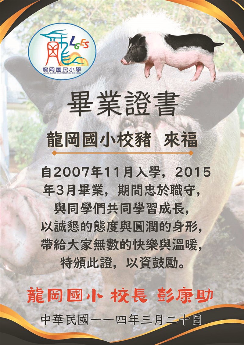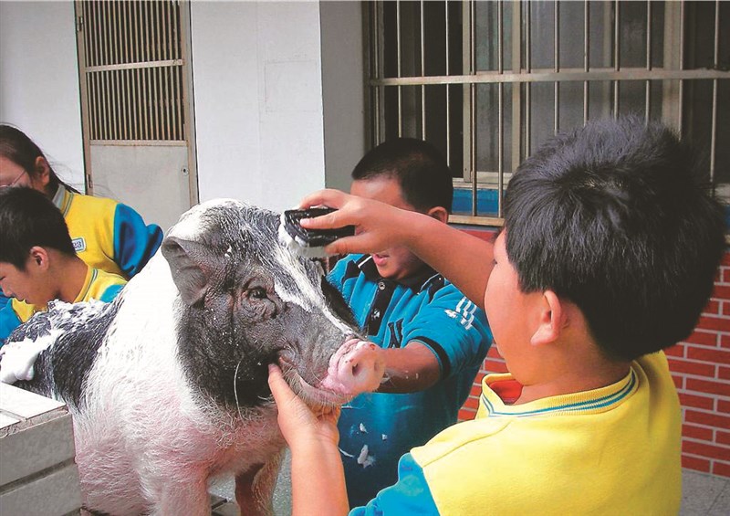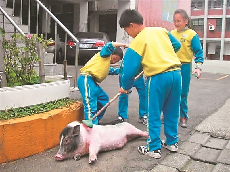 桃園龍岡國小師生 難忘和來福豬共學的日子 文/胡雪綾 |2026.04.05 語音朗讀 86觀看次 字級 大 中 小 在小朋友共同照顧下,「來福」幸福過了一生。 圖/桃園市龍岡國小 小朋友定期為「來福」洗澡。 圖/桃園市龍岡國小福岡國小為來福舉辦紀念會,並頒發畢業證書(圖)。圖/桃園市龍岡國小學校以圍籬隔絕不利「來福」的有毒植物。 圖/桃園市龍岡國小校犬「來玩」和校豬「來福」情同手足。圖/桃園市龍岡國小 「來福」很享受小朋友為牠按摩。圖/桃園市龍岡國小福岡國小為來福舉辦紀念會(圖),並頒發畢業證書。圖/桃園市龍岡國小校犬「來玩」能安撫小朋友的焦慮情緒。圖/桃園市龍岡國小 文/胡雪綾去年4月初,桃園市龍岡國小舉辦了「來福畢業10周年紀念會」,不但播放2015年3月病逝的校豬「來福」,當年和師生溫馨相處的生活影片,學校還頒發一張遲來的「畢業證書」,象徵「來福」正式從學校「畢業」了。成立社團召募志願軍2007年底,一隻3、4公斤重的小麝香豬,在龍岡國小大門口因無人認領,學校只好接手照顧,並將牠取名為「來福」。這一接手就是8年多,來福在龍岡國小被終養到老,也開啟了學校後來收養其他許多動物的緣分,甚至一度博得「龍岡動物園」美稱。因為「來福」的到來,龍岡國小的動物保護社應運而生,社團老師鍾孝昇帶領學生幫「來福」準備食物、定期洗澡、清理排泄物……一開始,只是請小朋友志願服務,但後來發現照顧人力需求極大,小朋友缺乏「職前訓練」,往往照顧得很吃力,於是社團水到渠成的誕生了……豬豬狗狗齊聚校園中從2007年到2015年「來福」壽終正寢,老師、有經驗的學長姊、新進社員,一年又一年的接力傳承,讓「來福」及後來陸續加入的兩隻校犬「來玩」和「來瘋」、一群日本雞、兔子……等校園動物,獲得妥善的照顧,成為龍岡國小的特色,不但吸引日本校犬協會派員拜訪觀摩,事蹟也在國際社群平台傳播開來。有趣的是,「來福」剛到龍岡國小時,應該只是一隻一歲左右大的幼豬,大人一手就能抱起牠,但養著養著,胃口極佳的「來福」像吹氣球般變得愈來愈大,不過一年的時間,就長到了26公斤左右,體型接近中大型犬,力氣也變得極大。研究來福產出佳作多雖然照顧起來不容易,但學校從沒有想過把頗具靈性的「來福」送走,歷任校長不但全力支持,改造飼養環境、提供食物及打疫苗、醫療經費,學生們也都相當關心、愛護牠,不但樂於幫忙餵食、打掃環境,還會檢視、隔開校園中豬不能吃的植物。「龍岡動物園園長」鍾孝昇老師說,透過觀察和親手照顧,小朋友更能領會尊重生命的概念,更因學生透過長期的觀察,將飼養心得轉化成科學研究成果,讓原本傳統的科展活動,變成了結合生命教育、環境教育的動態學習過程。有一年,龍岡國小學生以觀察「來福」的毛皮、毛髮和當年氣溫變化之相關性為題,順利在科展中取得好成績;另一年,學生以觀察「來福」的飲食習慣、智慧特性(能否區分有毒植物、選擇吃剩菜或鮮食)為主題進行科展研究,同樣得到佳績且讓評審們眼睛一亮。照顧師生獲邀看電影2009年日本電影《和豬豬一起上課的日子》來台上映,內容正好講述學生與學校飼養的豬之間的情感交流故事。電影片商得知龍岡國小「來福」的故事,特別邀請老師及負責照顧的同學們參加電影首映會,讓台灣的「和豬豬一起上課的日子」,和日本「豬學校」故事相互輝映。在「來福」到校的3年後,一位龍岡國小的學生在上學途中撿到了一隻髒兮兮的小黑狗,將牠帶到學校向老師求助——有了「來福」學長的經驗在前,龍岡國小對照顧動物已經相當熟悉,校長很快就同意讓這隻約兩個月大的流浪狗留下,自此,龍岡國小多了一隻校犬「來玩」。兩隻校犬先後成家人1年後,又有小朋友撿到小流浪狗!因為已經有了「來玩」,一開始學校有些猶豫,但在這隻浪浪的笑臉攻勢下,老師們很快地敗下陣來,最終同意收養牠,成為龍岡國小的第2隻校犬「來瘋」。同樣的,「來玩」和「來瘋」姐妹花,很快成為小朋友們的共學好夥伴。其實,在諸多溫馨故事背後,也有吃力不討好之處,例如:因為不懂得設立停損點,在動物數量最多的時候,校園一度有10多隻日本雞,引來蛇和老鼠偷吃剛生的雞蛋;此外,在繁忙的教學工作之餘,還要背負繁重的照顧工作,大家又不想把雞整天關在籠子中,因此有過一段相當「雞飛狗跳」的日子……自然變化的生命教育所幸隨著雞隻老化死亡,問題逐漸變少,加上兩隻校犬作為大學姊,每年都能在開學時,成功安撫小小新鮮人,化解小朋友的分離焦慮,甚至,在小朋友初學「注音符號」時,「來玩」和「來瘋」就會進班做教學,讓小朋友學習拼出「ㄌㄞ ㄈㄥ」和「ㄌㄞ ㄨㄢ 」,學生的學習情緒比一般教學更高昂!2015年3月,龍岡動物園開「養」元老「來福」病逝了,目前學校也只剩下兩隻校犬,雖然動物園榮景不再,但龍岡國小的生命教育愈來愈上軌道,「來玩」、「來瘋」更在龍岡國小的課程中占有重要地位,還幫龍岡國小爭取到桃園市唯一受到農業部表揚的校犬楷模學校。雖畢業 溫馨永留人間2015年4月初,龍岡國小為10年前去逝的校豬舉辦「來福畢業10周年紀念會」,師生們首先欣賞一段特別製作的回顧影片,重溫「來福」從小到大在校園中的可愛點滴,也呈現了學生們如何細心照顧來福的過程,從餵食、清理豬舍到與牠互動,每一個