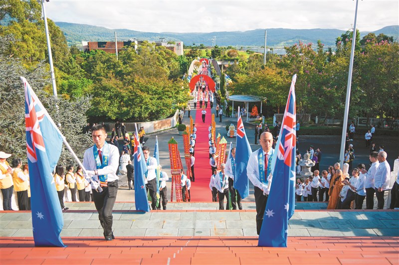 星雲大師靈骨分燈大洋洲 願力延續 人間社記者文慧臥龍崗報導 |2026.04.06 語音朗讀 43觀看次 字級 大 中 小 佛光山開山祖師星雲大師靈骨,恭奉在南天寺大雄寶殿。 圖/人間社記者王一鑫恭迎隊伍排列整齊經南天大橋、大悲殿與丹墀,最終到達大雄寶殿。圖/人間社記者Sophie慧開法師(左3)、滿可法師(左2)帶領恭迎隊伍巡禮道場。圖/人間社記者王一鑫 【人間社記者文慧臥龍崗報導】佛光山開山祖師星雲大師靈骨分燈大洋洲恭奉典禮,3月22日在澳洲南天寺隆重舉行。來自政界、宗教界與僑界近2000人齊聚觀禮,海內外同步直播,共同見證法脈傳承的重要時刻,場面莊嚴隆重、感人至深。典禮貴賓雲集,包括聯邦議員Alison Byrnes、新南威爾斯州規劃及公共空間部長Paul Scully、臥龍崗市長Tania Brown、雪梨市議員Robert Kok、南天大學校長Alistair Noble、Dhammakaya International Society of Australia主席Phrasamu Atorn Dhammachandho、法國菩提尼耶那羅摩寺住持阿姜潘考尊者、澳中佛教總會會長般若法師、雪梨定慧寺住持證雲法師、澳洲越南道場福慧寺代表等各界代表共襄盛舉;慈濟澳洲分會、福建會館、僑務委員及澳洲星雲大師教育基金會等社團亦組團出席。大師弘法利生悲願 落地生根典禮特別規畫恭迎巡山儀程,自南天大學廣場啟程,行經南天大橋、大悲殿與丹墀,最終抵達大雄寶殿,象徵恭迎大師重返其親手擘畫的人間淨土。沿途隊伍莊嚴肅穆,信眾合十隨行,場面溫馨、感人。佛光山澳紐總住持滿可法師於典禮中致詞,回顧南天發展歷程,包括2000年臥龍崗市政府捐地予南天寺興辦南天大學,大師心繫教育,發願興建橋梁連接寺院與學府。2018年南天大橋落成,大師因健康因素,未能親臨主持,如今大師靈骨行經此橋,滿昔日宏願,別具深意。滿可法師並祈願大眾承繼大師精神,走出人間佛教的光明大道,將幸福平安普照大洋洲。語畢,全場信眾動容,淚光閃動,虔誠迎請大師歸來。迎奉儀式在佛號聲中展開,大幢幡、飛天敦煌、泰國塔與傳爐隊伍依序前行,佛光山副住持慧開法師、滿可法師及紐西蘭佛光山住持滿信法師共同主法,護法金剛恭抬舍利塔步入大殿,大眾頂禮三拜,感念大師慈悲眾眾,也見證大師弘法利生的悲願在大洋洲落地生根。滿可法師表示,自2015年大師主持南天大學開幕後,十年間未再蒞臨大洋洲,如今迎奉靈骨意義深遠,並勉勵大眾「見靈骨舍利塔如見大師」,透過研讀《星雲大師全集》、傳唱人間音緣、實踐三好四給與五和理念,延續慈悲智慧。薪火相傳 法身慧命長住人間臥龍崗市長Tania Brown致詞指出,南天寺自1995年開光以來,長年為地方提供心靈依歸與文化滋養,並致力環境永續,對社區影響深遠。Lake Illawarra警區指揮官Darren Bland亦表示,佛教慈悲謙和精神與警政守護社會使命相互契合,未來亦將把此理念融入社區服務之中。典禮中,各協會獻唱人間音緣組曲,歌聲悠揚真摯,現場瀰漫深切追思與感恩氛圍。般若法師讚歎大師將漢傳佛教弘揚全球,此次分燈象徵法脈延續、薪火相傳;慈濟基金會澳洲分會執行長宋以剛亦表示,分燈不僅是儀式,更象徵法身慧命長住人間。江蘇無錫同鄉會代表陳惠英、孫驊仰岱一致表示,將秉承大師遺願,弘揚人間佛教,令法燈代代相傳。 前一篇文章 南華大學寺廟文化與管理論壇 4月11日登場 下一篇文章 大洋洲僧信話說星雲大師 細述不凡智慧 熱門新聞 01祖厝大變身 王榮文打造農夫美術館2026.03.3102苗栗漁港冒藍眼淚 縣府將檢測水質2026.03.3103明德水庫蓄水量僅27% 今起供4停42026.04.0104星雲大師靈骨分燈日本 法燈長明2026.04.0105【讓愛自由】纏繞與獨立之間2026.04.0206新生首次到校2026.04.0207佛光會理監事會議 佛光精神深耕全球2026.03.31089公尺高恐龍 現身澄清湖2026.04.0109東京櫻花滿開2026.04.0110星雲大師靈骨分燈泰國 化益世人2026.04.02 訂閱電子報 台北市 天氣預報 台灣一週天氣預報 相關報導 法水寺佛誕特展 小小年紀畫大大宇宙世界童軍總部 覺多法師獲聘大乘佛教顧問大洋洲僧信話說星雲大師 細述不凡智慧佛光大學社工系校友 專業表現獲表揚印尼佛教學院 第7屆線上佛學班開學星雲大師靈骨分燈印度 回歸佛陀故里 作者其他文章獻策聯合國 南天大學提出《佛教數據原則》法寶贈南天大學 學術信仰新對話鼓勵學子精進學業 南天寺頒獎助學金落實星雲大師慈悲心 南天寺包子送暖新州州長訪南天寺 肯定弘法利生貢獻南天寺30周年慶 菩提眷屬沐佛恩