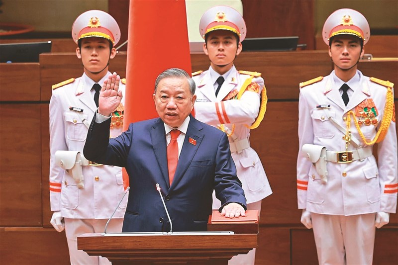 【本報綜合外電報導】越南新任國會7日投票,以495:0,全數通過越共總書記蘇林兼任國家主席,將在未來5年擁有執掌國家的雙重授權;此為史無前例權力整合,打破4架馬車的集體領導傳統,有如中國大陸模式。學者表示,有威權主義風險,但也能使政策制定與執行更有效率。