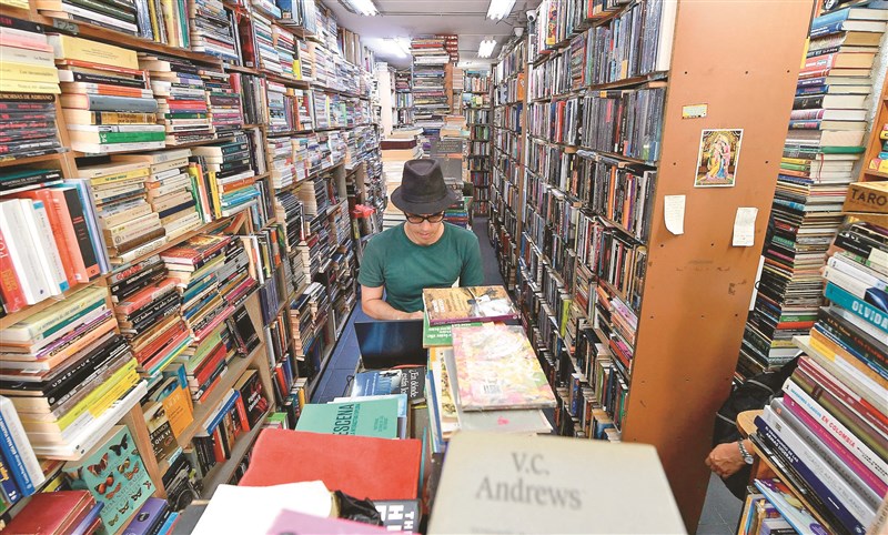 聯合國教科文組織宣布,哥倫比亞麥德林獲選為「2027年世界圖書之都」,以表彰其促進閱讀的政策。麥德林擁有超過110家書店與25座圖書館。圖為一名男性在書店整理圖書。 圖/法新社